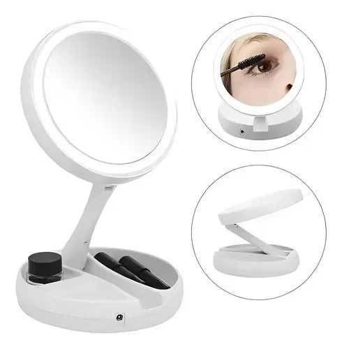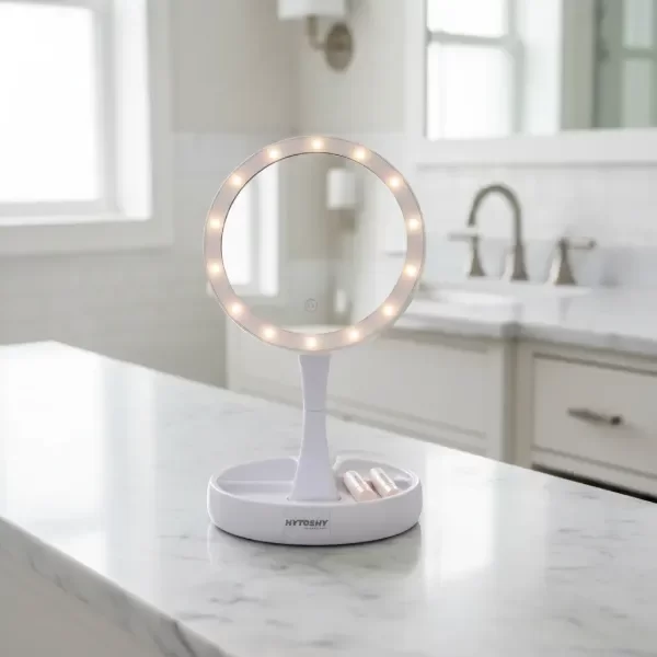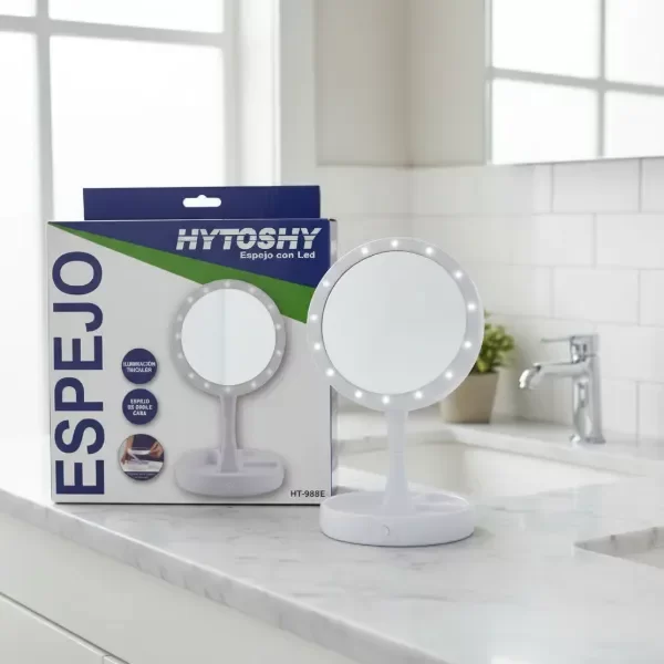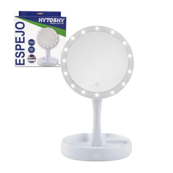 Espejo Maquillaje Doble Faz Con Led Hytoshy HT-988E Plegable