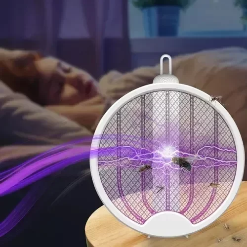 La raqueta eléctrica HYTOSHY es una solución práctica y efectiva para eliminar mosquitos y otros insectos voladores. Su diseño 2 en 1 permite usarla como raqueta manual o dejarla fija como lámpara atrapamosquitos gracias a su luz púrpura integrada.