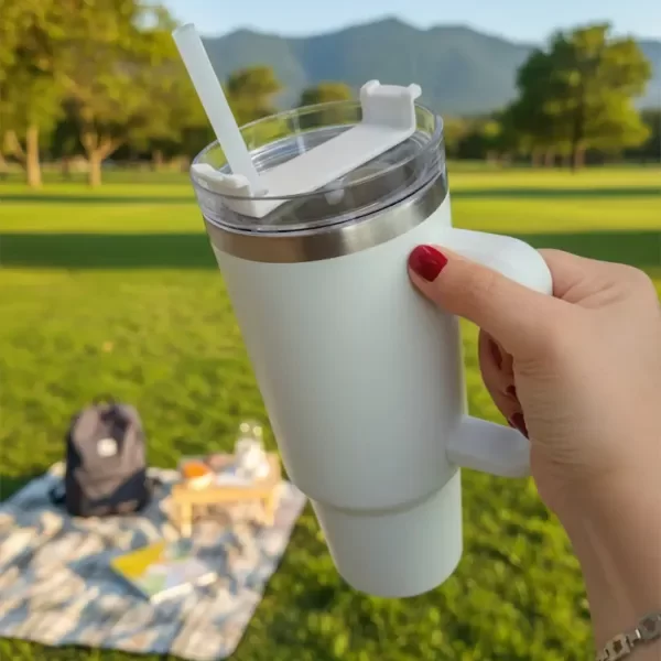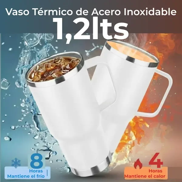 El Vaso Térmico de Acero Inoxidable con Manija de 1,2 litros es ideal para mantener tus bebidas frías o calientes por más tiempo, tanto en el hogar como en el trabajo, viajes o actividades al aire libre.