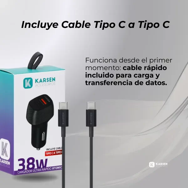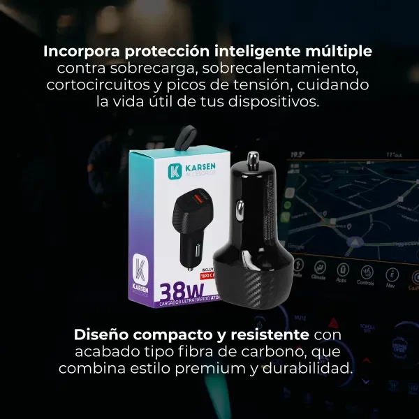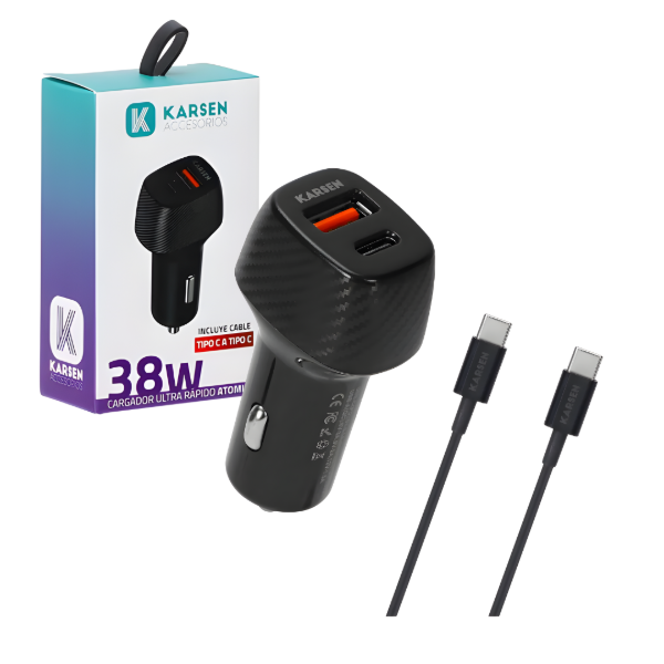 ¡Olvidate de quedarte sin batería mientras estás en el camino con el Cargador de Auto Karsen Atomic de 38W!