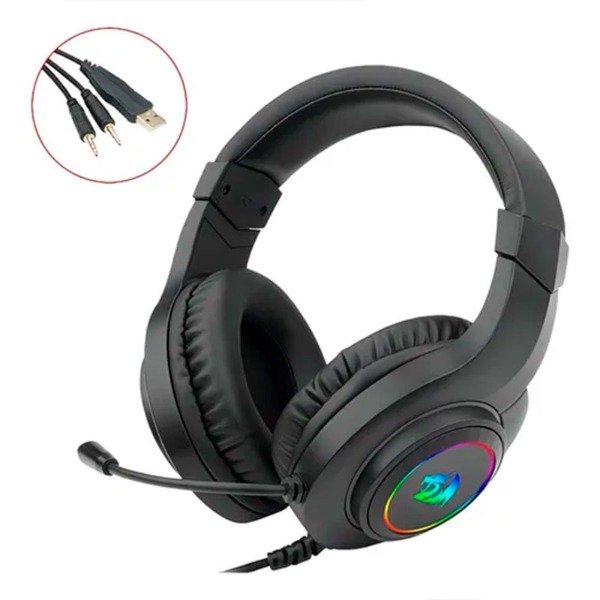 Contenido de la caja: auriculares, manual, adaptador 2x1 auriculares y micrófono, sticker Redragon.