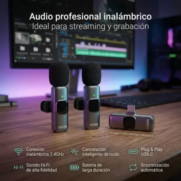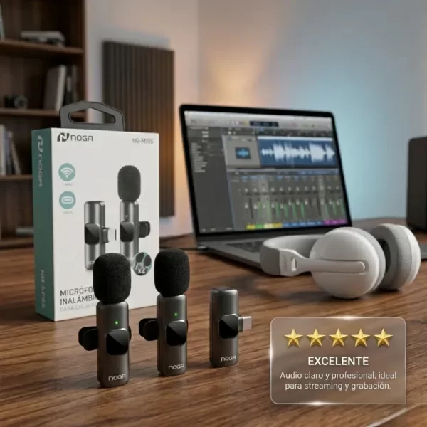 Esta nueva línea de micrófonos inalámbricos de Noga es una excelente opción para tener una experiencia más cómoda sin cables. Estos micrófonos se conectan fácilmente a tu dispositivo mediante un Receptor Bluetooth y te permiten captar un sonido claro y nítido a distancia.