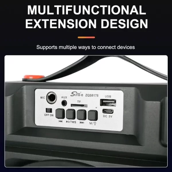 El Parlante Sing-E ZQS8178 es la opción perfecta para quienes buscan un equipo versátil, práctico y con excelente calidad de sonido. Ideal para interiores y exteriores.