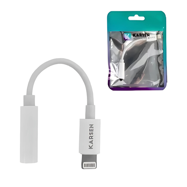 Adaptador para iPhone Mini Plug Jack 3.5mm con el cual podrás escuchar tus auriculares, o dar salida al audio del iPhone a cualquier auxiliar 3.5mm, sean parlantes, stereos, amplificadores y similares.