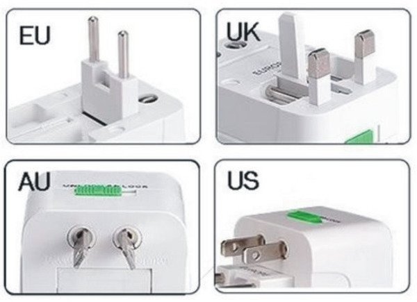Adaptador Enchufe Universal Especial Internacional 110v 220v. Si vas a viajar al Exterior, y tenés dudas que tipo de enchufe usan en ese País, llevate éste adaptador que te permitira conectar tus dispositivos en todo el mundo.
