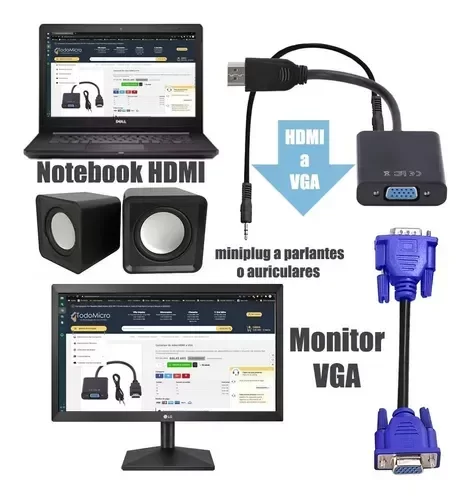 Cable Conversor Hdmi A Vga con AUDIO!!. Solo para dispositivos con salida HDMI.