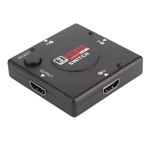 Con sólo presionar el botón de selección, el HDMI-Switch te brindará la posibilidad de elegir entre 3 dispositivos distintos conectados a un solo puerto HDMI de tu TV o Monitor LED/LCD.