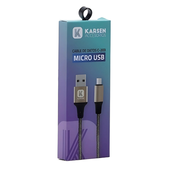 El cable Micro USB Karsen C-203 es ideal para quienes buscan un accesorio confiable, duradero y con capacidad de carga rápida de hasta 3.1A. Diseñado con un trenzado reforzado, soporta el uso diario sin perder eficiencia ni resistencia.