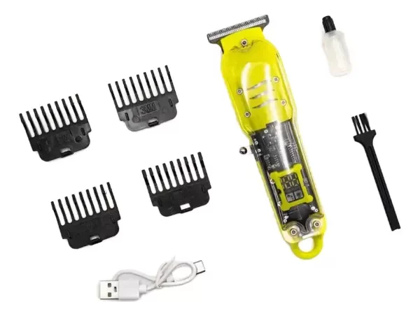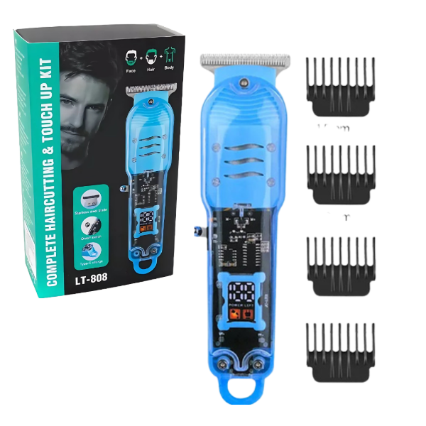 La máquina de corte y perfilado LT-808 es una herramienta versátil diseñada para lograr cortes precisos y perfilados profesionales en cabello, barba y cuerpo. Su diseño moderno con carcasa transparente y pantalla digital la convierte en una opción ideal para quienes buscan comodidad y eficiencia.