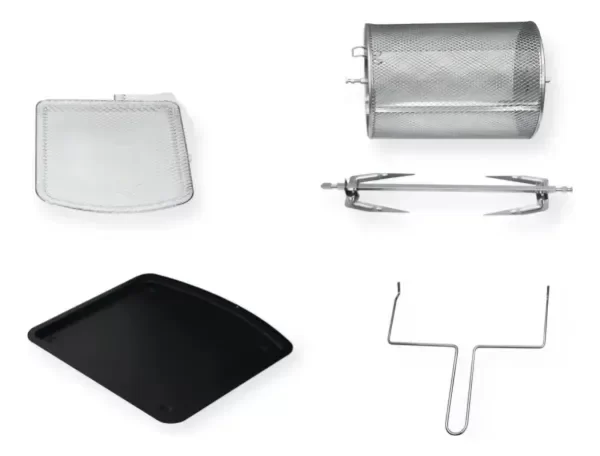 Este increíble producto viene con parrillas, bandeja de goteo, gancho para quitar los accesorios, cesta giratoria y pincho para asar, y ofrece todo lo que necesita para aprovechar al máximo las funcionalidades del Air