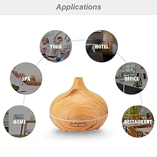 Cuenta con iluminación LED de 7 colores seleccionables, permitiendo adaptar la atmósfera según el momento: descanso, trabajo, relax o meditación. Su diseño estilo madera se integra fácilmente en la decoración de dormitorios, salas, oficinas, spas y más.
