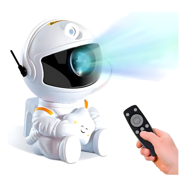 El Mini Astronauta Proyector Galaxia combina tecnología, diseño y relajación en un solo dispositivo. Su original forma de astronauta con casco proyecta un impresionante espectáculo de luces y nebulosas, creando un ambiente único y tranquilo en cualquier espacio. Ideal para dormitorios, salas de juegos o noches de cine en casa.