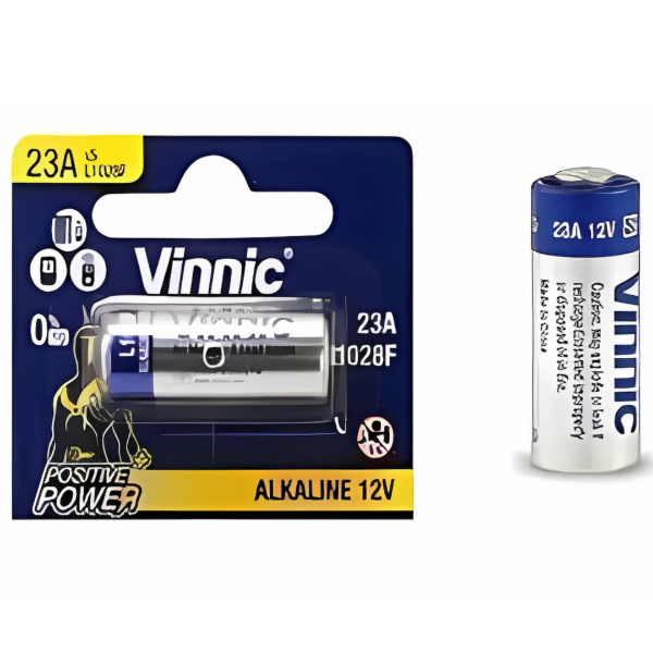 PILA 23A Alcalina Marca Vinnic – Origen China – Modelo 23A MN21 A23 L1028F 12V – Dimensiones en Milmetros (Diametro x Altura) 6.80 x 2.60 – Reemplaza 23A MN21 A23